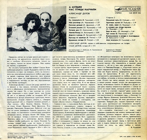 АвторТема: Дулов Александр - А музыке нас птицы научили. LP С60 30929 002 (1991) (320 kbps)  (Прочитано 1371 раз)