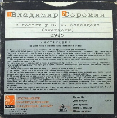 Сорокин Владимир - «В гостях у В. Ф. Казанцева» (анекдоты) 1985 (WAV)