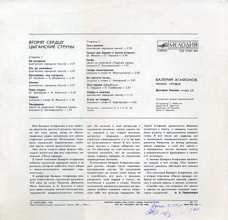Альбом: Вторят сердцу цыганские струны. Диск-гигант С60 27403 004