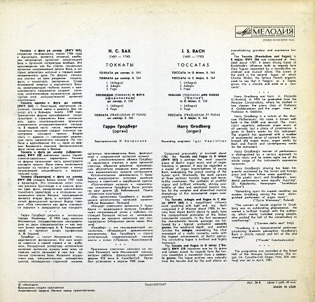 Альбом: И.С.Бах. Токкаты. LP Мелодия СМ 02513-4
