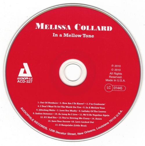 Исполнитель: Melissa CollardАльбом: In a Mellow ToneДата: 2010Жанр: JazzФормат: losslessКачество: flacРазмер архива: 167 MBФайлообменники:DropmefilesТреклист:1.Out Of Nowhere